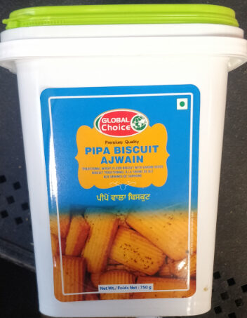 Global Choice Pipa Ajwain Biscuit 750g is a crunchy and flavorful biscuit that pairs wonderfully with tea, coffee, or milk. Made to satisfy your snack cravings, it delivers the perfect balance of sweetness and texture. Great for family tea times, picnics, or as a quick treat any time of day.